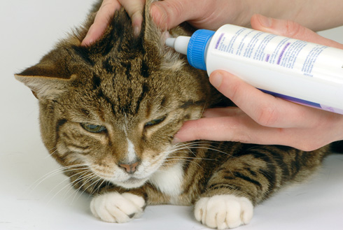 Catatan : pemberian berbagai macam cairan pembersih atau obat tetes telinga dilakukan pada keadaan normal, artinya tidak ada kerusakan pada selaput gendang telinga. Bila ternyata ada kerusakan pada gendang telinga, sebagian besar obat-obatan tersebut dapat menyebabkan kerusakan telinga/iritasi yang lebih parah. Sebaiknya periksakan kucing anda ke dokter hewan terdekat.
